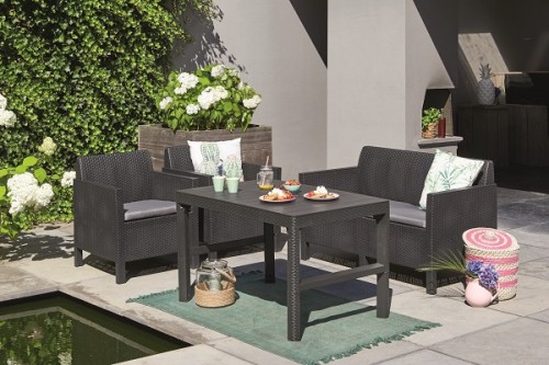 Розкладний стіл Lyon є дуже функціональним рішенням, яке дозволяє організувати простір залежно від потреб користувачів. Конструкція дозволяє зафіксувати стіл у 2-х положеннях: низькій (coffee) або високій (dining), ідеально підійде для їжі. Характеризується простотою форми, комфортністю експлуатації та дуже легким монтажем та обслуговуванням. Стійкий до несприятливих атмосферних впливів та УФ-випромінювання.