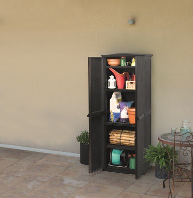 л простору в саду або на терасі. Конструкція шафи захищає внутрішню частину від попадання води та вологи. Шафка, оснащена полицями, підійде для зберігання різноманітних інструментів та аксесуарів, призначених для побутових чи садових робіт. Матеріали найвищої якості гарантують тривалий термін служби виробу.