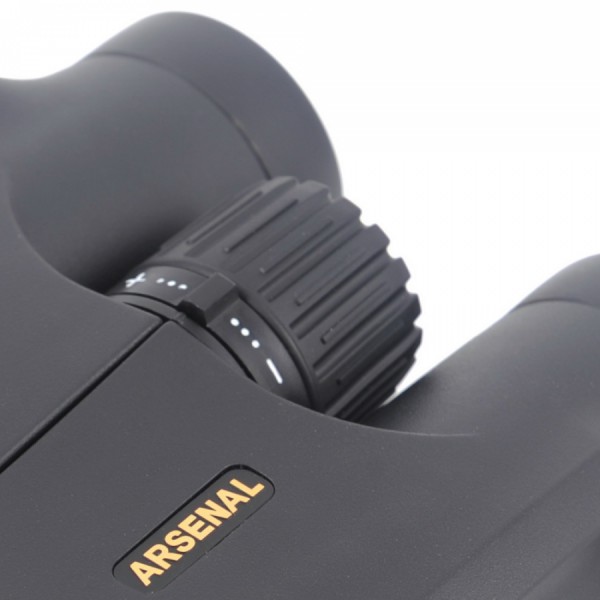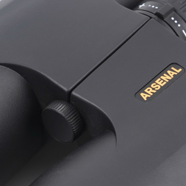 Бінокль Arsenal 8х56 DCF має великий барабан центрального фокусування, що забезпечує плавне та точне налаштування, а також діоптричне налаштування правого окуляра для точної відповідності індивідуальним особливостям зору. Гумове покриття корпусу із спеціальними виїмками для пальців створює комфортність спостережень та надійність при утриманні бінокля в руках.