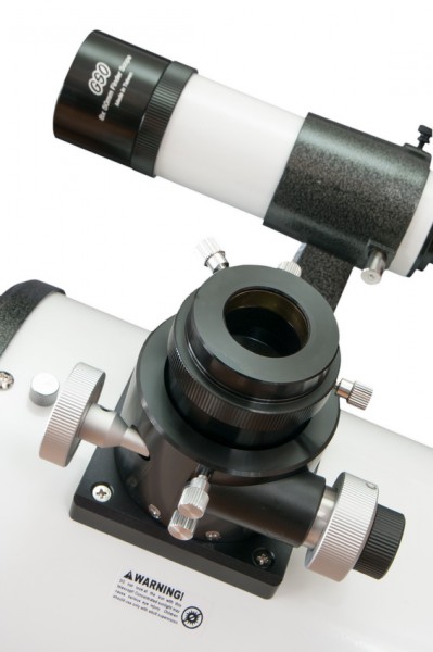 Використовуючи два гвинти, розташовані вздовж осі вузла фокусера, Ви зможете зупинити фокусування або змінювати силу тертя в механізмі фокусування. Усередині фланця трубки 2" фокусера є компресійне латунне кільце, яке більш дбайливо і надійно фіксує окуляр за допомогою пари притискних гвинтів. Додається ще адаптер для окулярів з посадковою втулкою 1.25" (також з компресійним кільцем). Він фіксує польову діафрагму 1.25" окулярів на 7.5 мм вище, ніж 2". Також у комплекті є адаптер з T-різьбленням для фотокамер.