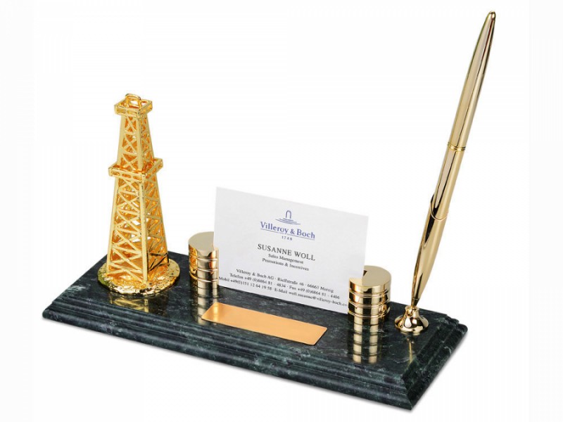 Практичний та оригінальний подарунок для керівників чи представників партнерських організацій. Настільний прилад із візитницею та підставкою для ручки дозволить організувати робочий простір та підкреслити специфіку роботи компанії.