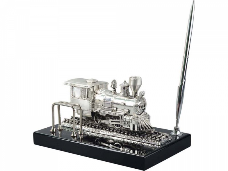 Ексклюзивний подарунок для керівників транспортних, туристичних та залізничних компаній. Настільний прилад із фігурою паровоза створить необхідний акцент у приміщенні та підкреслить специфіку організації. На приладі передбачений тримач для ручки та візиток.