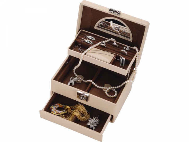 Стильна скринька з натуральної шкіри допоможе акуратно зберігати коштовності та прикраси. Скринька стане дуже корисним та актуальним подарунком для жінок до будь-якої урочистості. В асортименті представлені два кольори.