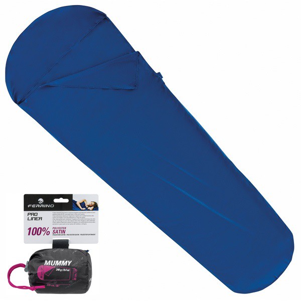 Вкладиш Ferrino Liner Pro Mummy Blue - ідеальне рішення для підтримки особистої гігієни при короткочасних ночівлях у хостелах, поїздах або на природі у спальному мішку. При використанні вкладиша зі спальним мішком досягається більший тепловий комфорт, але головне те, що немає необхідності прати спальний мішок, який, як правило, потребує більш делікатного догляду, достатньо лише випрати вкладку. Матеріал вкладиша із сатиновим переплетенням є комфортним та приємним для тіла, відмінно провітрюється та відводить вологу. Упакований у чохол вкладиш не займе багато місця в рюкзаку, а завдяки петлі з текстильною застібкою Velcro також може бути пристебнутий на рюкзак зовні.