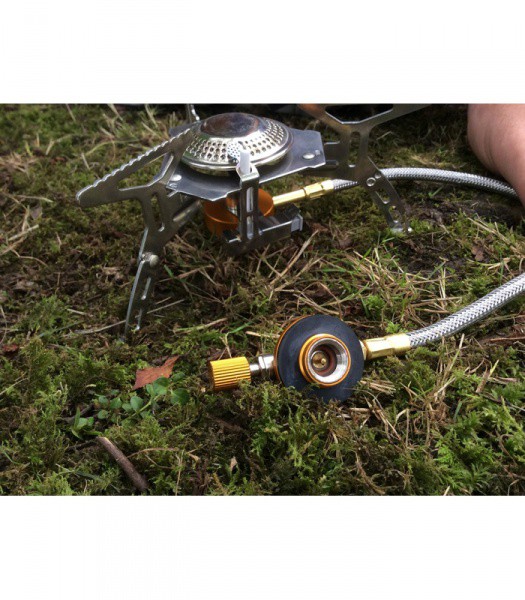Плита має стійку конструкцію, завдяки чому зручно використовувати казанки великих розмірів. Модель оснащена гнучким вогнетривким шлангом, п'єзопідпалом та футляром для зберігання.