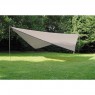 Універсальний тент для захисту від сонця, шкідливої дії ультрафіолетових променів UV або негоди. Виготовлений із високоміцного поліестеру. Має помірну вагу та компактну упаковку для транспортування. Стійки у комплекті. Усі точки кріплення вітрових розтяжок посилені вставками із міцної тканини.