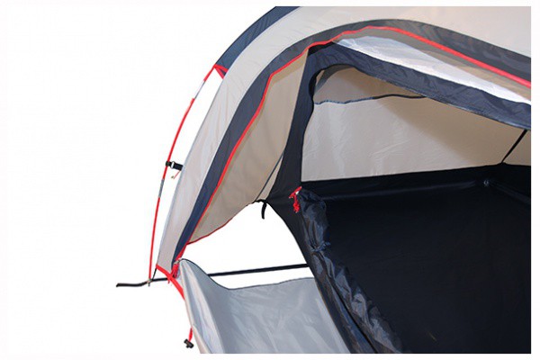 Легкий туристичний 2-місний намет. Швидка установка та складання, невелика вага, вентиляційний клапан, москітна сітка на вході – все що потрібно для коротких подорожей.