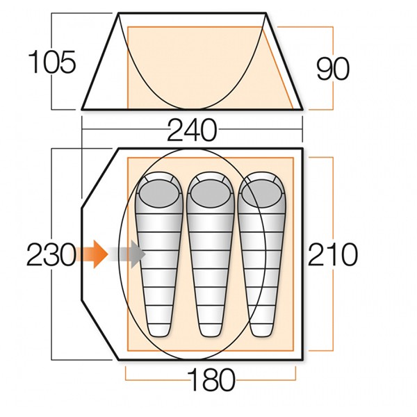 - Внутрішній намет (ДхШхВ), мм: 1800 х 2100 х 900