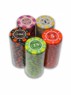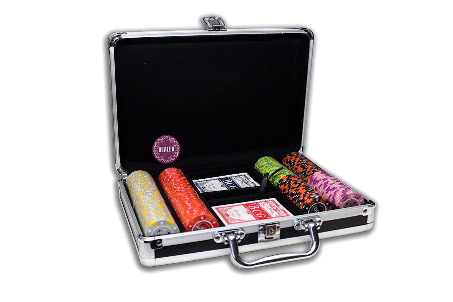 У комплект набору входять гральні карти, кнопка дилера та покерні фішки (200 шт.):