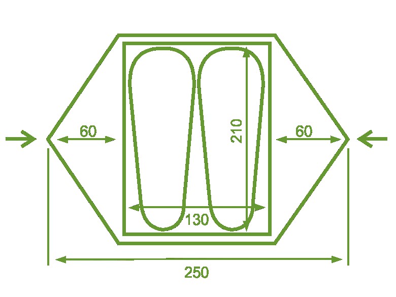 Зовнішній тент: 400T 20D Ripstop Nylon Silicone/PU 3000 мм W/R. (Нейлон, ріпстоп, силіконове водо-відштовхувальне покриття 3000 мм)
