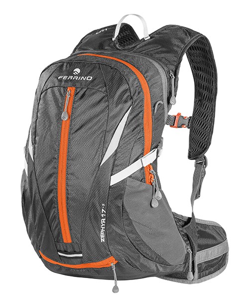 Рюкзак спортивний Ferrino Zephyr 17+3 Black призначений для бігу, їзди на велосипеді та трекінгу без нічого. Відмінною особливістю цієї серії є можливість збільшення об'єму за допомогою блискавки, розміщеної по периметру. Zephyr 17+3 Black найбільш оптимальний для любителів бігу та їзди на велосипеді. Рюкзак має повністю вентильовану ортопедичну спинку і шлейки з сітки, що дихають. Регульований пояс на стегнах, і нагрудна стяжка надійно фіксують рюкзак під час активного проведення часу. Для гідратаційної системи передбачено спеціальне відділення на блискавці. Це дуже зручно, тому що для наповнення питної системи немає необхідності розпаковувати головне відділення рюкзака. Крім того, всі речі, напевно, залишаться сухими. Додатковий запас води зручно розмістити у флягах, що фіксуються з боків рюкзака. Основне відділення має сітчасту кишеню на блискавці з карабіном для ключів. При необхідності воно може бути збільшено обсягом на 3 літри. Якщо цього не вистачить, речі можна прихопити бічними компресійними стяжками зовні. Дрібні речі можна розмістити у фасадній або поясних кишенях. З метою забезпечення максимальної безпеки бігуна або велосипедиста, рюкзак оснащений свистком, елементами, що відбивають, і спеціальною петлею на фасаді, призначеною для кріплення червоного ліхтаря-маячка. Пара потайних кишень приховують сітчасте кріплення для шолома та захисний чохол від дощу.