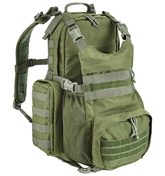 Рюкзак має корисний об'єм 35 літрів, має регульовану кишеню відкритого типу на фасадній частині рюкзака, обладнаний системою Molle за стандартами NATO (25х35 мм), адаптований під питну систему, а також має безліч відділів і кишень для дрібних речей.