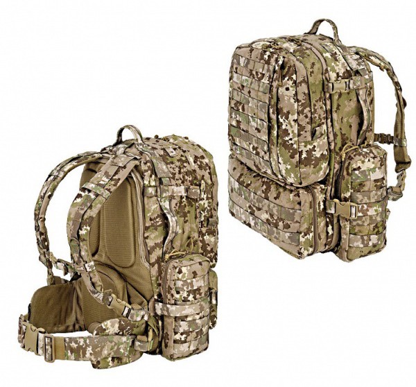 Система підвісу рюкзака сприяє підтримці правильного положення хребта при ходьбі та дозволить переносити вантажі на великі відстані, забезпечивши при цьому правильний перерозподіл ваги. Рюкзак має корисний об'єм у 60 літрів, обладнаний системою Molle за стандартами NATO (25х35 мм), адаптований під питну систему, а також має безліч відділів та кишень для дрібних речей.