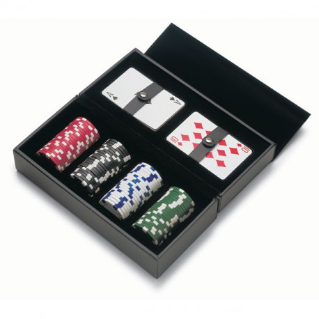 В коробке из мягчайшей итальянской кожи собрано все необходимое для любителя покера: две колоды добротных пластиковых карт и фишки. Все элементы прочно закреплены - этот набор очень удобно брать с собой в дорогу.