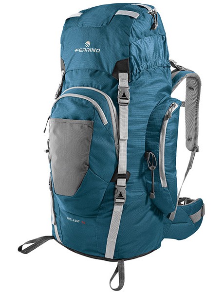 Серія великих трекінгових рюкзаків Chilkoot від Ferrino призначена для тривалих піших походів, як маркірованими стежками, так і поза туристичними маршрутами. Враховуючи велику вагу при максимальному завантаженні, рюкзак зроблений досить легким, а при необхідності може бути полегшений на чверть і використовуватися, як безкаркасний. Внутрішній об'єм можна змінювати за допомогою витяжного клапана. Вся підвісна система легка та забезпечує дуже м'яку посадку рюкзака на спину. Величезний обсяг рюкзака дозволяє розмістити всі необхідні речі усередині. У зимових походах об'ємний спальник або намет може бути зафіксований нижніми компресійними стяжками, які мають великий запас довжини. На фасаді рюкзака є кріплення для пари трекінгових палиць та льодоруба. Кишенями рюкзак також не обділений: дві бічні кишені на блискавці, велика фасадна кишеня на блискавці, відкрита сітчаста кишеня, кишеня на поясному ремені і поділена сітчастою перегородкою подвійна зовнішня кишеня з карабіном для ключів у клапані вмістять усі необхідні дрібні речі. Рюкзак повністю адаптований до питної системи. У нижній потайній кишені розміщено захисний чохол від дощу. Тканина рюкзака також має гарне водозахисне просочення. У двох точках з максимальним навантаженням конструкція посилена міцним матеріалом Hypalon®.