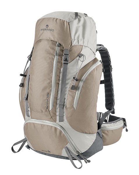 Компанія Ferrino розробила спеціальну лінійку туристичного екіпірування, що забезпечує максимальний комфорт для дівчат, враховуючи особливості анатомії жіночого тіла. Крім зміненої форми шлейок та поясного ременя з більш м'якими пінополіуретановими підкладками, цей рюкзак має знімну грудну стяжку. В іншому дана модель, як і вся серія Durance, є містким туристичним рюкзаком для походів вихідного дня з ночівлею. Усередині рюкзак обладнаний під питну систему, має досить мету, щоб розмістити літні намет, спальник та інші особисті речі. За допомогою додаткових строп, що постачаються в комплекті, на рюкзаку можна зафіксувати більш об'ємне екіпірування. Фасадні кріплення використовуються як для трекінгових палиць, так і для фіксації льодорубів. Система підвісу рюкзака DNS правильно розподіляє навантаження та забезпечує найвищий рівень вентиляції. Внутрішнє місце рюкзака розділене перегородкою зі стяжним шнуром. Фронтальний доступ відкривається дуже широко, дозволяючи розмістити у нижньому відділенні літнє трекінгове взуття. Рюкзак відрізняється місткими бічними кишенями та глибокою фасадною кишенею на блискавці. Кишеня на клапані розділена блискавкою на два відділення та має карабін для ключів. Для найнеобхідніших дрібниць є кишеня на поясі на стегнах.