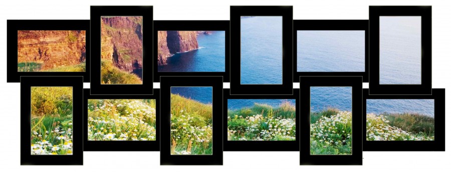 Дерев’яна мультирамка " Історія " на 12 фото , чорна .