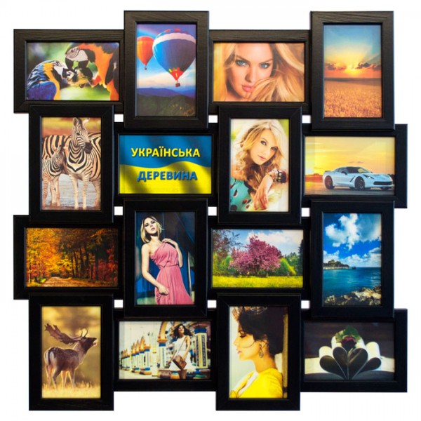 Характеристики товару Деревяна мультирамка Класика на 16 фото чорна .