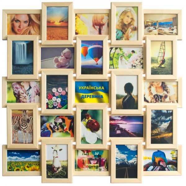 Дерев’яна мультирамка "Класика" на 25 фото, натуральне дерево .