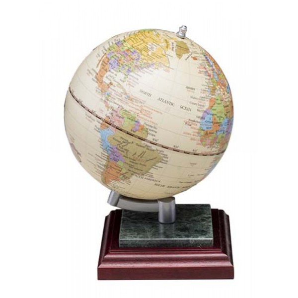 Діаметр: 125 мм. Сучасна політична картографія. Англійська мова. Підставка з натурального дерева та мармуру.