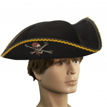 Хочеш відчути себе справжнім завойовником семи морів? Фетровий піратський капелюх у вигляді трикутника із закругленими краями, золотистою облямівкою по краях і Веселий Роджер доповнять ваш карнавальний костюм. Капелюх Пірата Веселий Роджер трикутник підкреслить вашу палку вдачу і доповнить образ капітана піратського корабля