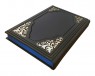 Палітурка французька цільно-шкіряна, ручної роботи. Колір шкіри "темно-синій" зі "світло-синьою" вставкою (Італія). Кристали "Swarovski". У центрі – художня композиція, обрамлення – гравіювання.