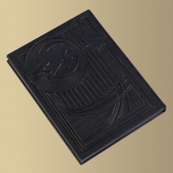 Про палітурку: палітурка французька цільношкіряна, ручної роботи. Шкіра колір "темно-синій" (Італія), а також вставка зі шкіри кольору "блакитна блакить". Рельєф на шкірі та тиснення виконані вручну. Круглі коріння книг прикрашають високі бинти. Обкладинка декорована гравірованою композицією, колір - "золото" та "срібло" з інкрустацією стразами Swarovski. Каптал шовковий, ручне плетіння. Форзац складовий. Обріз полірований, колір - "срібло".