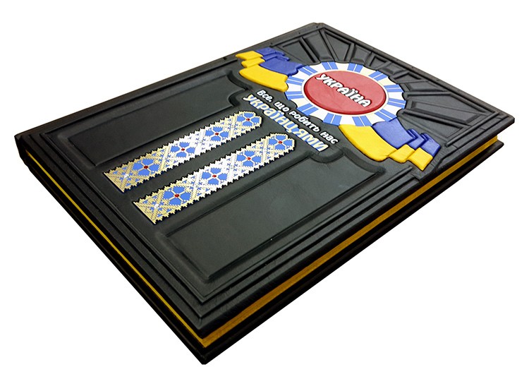 Книга виконана з натуральної шкіри найвищої якості з використанням дорогоцінного каміння. Цінителю вишуканих речей або колекціонеру рідкісних творів, вона стане справді найціннішим подарунком.