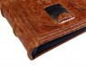 Обкладинка на шкіряному фотоальбомі виготовляється вручну висококласними художниками та майстрами «Златої Артелі» з використанням технік тиснення, високого рельєфу по шкірі, розпису, інкрустації, аплікації, гравіювання. Також ми можемо включити в дизайн фотоальбому елементи металу, дерева, шовку, каміння та кристали Swarovski. У роботі використовується лише натуральна італійська шкіра.