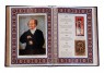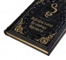 Про переплет: переплет французький цільношкіряний ручної роботи. Коріння книг прикрашають високі бинти. Шкіра кольору ебенового дерева (Італія). У середині і по кутах гравіювання, колір - "золото", інкрустована кристалами Swarovski. Каптал шовковий, ручної плітки. Форзац складовий. Обріз полірований, фарбований вручну, цвіте золото. Техніки: гравіювання, високий рельєф і тиснення по шкірі.
