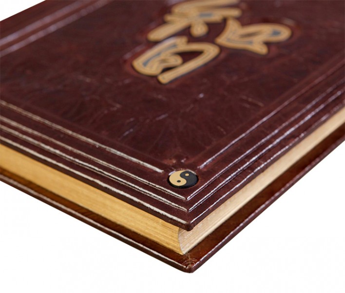 Про палітурку: палітурка французька цільношкіряна, ручної роботи. Шкіра, колір – "палісандр" (Італія). Всі елементи на обкладинці – високий рельєф та тиснення по шкірі виконані вручну. У середині – гравірована композиція, колір – "золото". Каптал шовковий, ручне плетіння. Форзац складовий. Обріз полірований, колір - золото.