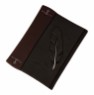 Палітурка французька цільно-шкіряна, ручної роботи. Колір шкіри чорний та коричневий (Італія). Кристали "Swarovski".