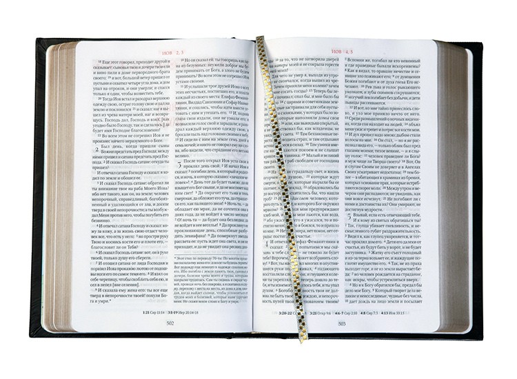 Святе Письмо в Синодальному перекладі. Збережено посторінкове розташування тексту. Рисовий папір. Надрукована з благословення Олексія Другого.