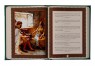 Про палітурку: палітурка французька цільношкіряна, ручної роботи. Шкіра колір "темно-зелений" (Італія), а також вставка зі шкіри кольору "весняно-зелений" та "синій" (Італія). Рельєф на шкірі та тиснення виконані вручну. Круглі коріння книг прикрашають високі бинти. Обкладинка декорована композицією - гравіювання, колір - срібло інкрустована кристалами Swarowski. Каптал шовковий, ручне плетіння. Форзац складовий. Обріз полірований, колір - золото.