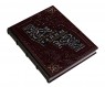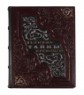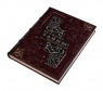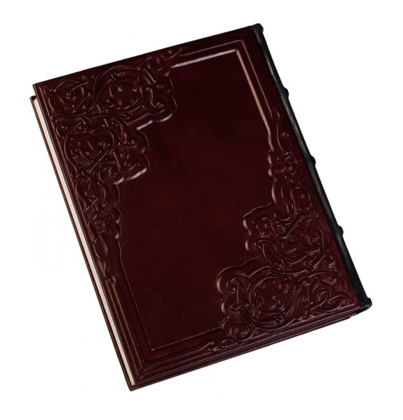 Про палітурку: палітурка французька цільношкіряна ручної роботи. Шкіра чорного кольору комбінована із шкірою кольору бордо (Італія). Всі елементи на обкладинці – високий рельєф та тиснення по шкірі зроблені вручну. У центрі – художня композиція – гравіювання. Каптал шовковий, ручне плетіння. Форзац складовий. Обріз полірований, забарвлений вручну.