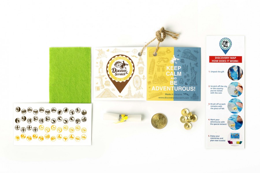 Discover & Scratch World Gold - детальна скретч карта світу з унікальним туристичним наповненням, яка стане найкращим подарунком для мандрівників, які мріють відкрити для себе весь світ! Відвідуйте нові країни, шукайте їх на карті та стирайте з них монеткою скретч покриття. А свій активний відпочинок відзначайте на карті спеціальними наклейками!