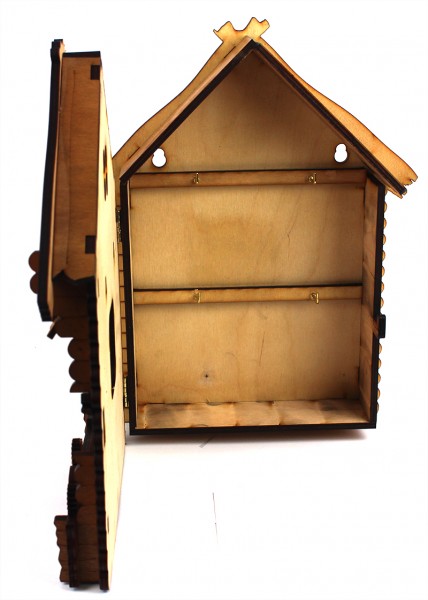 Міцний та красивий будиночок, ідеальне місце для зберігання Ваших ключів. Будиночок компактних розмірів легко вміщує 5 зв'язок ключів у вільному сусідстві. Оригінальна ключниця виготовлена з натуральної деревини твердих порід дерева, за відсутності механічних впливів термін служби не обмежений! Настінна ключниця послужить чудовим подарунком як інтер'єрна прикраса для будинку.
