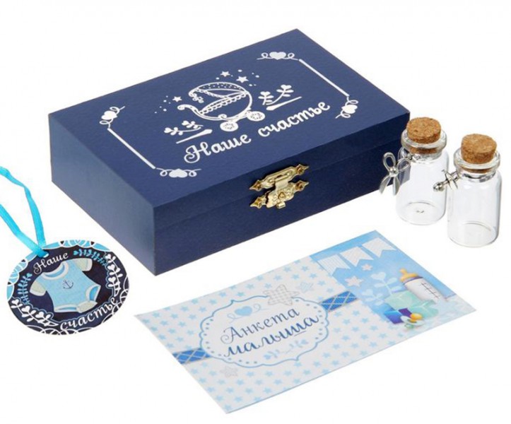 Скринька для зберігання першого зубика та локону з медаллю " наше счастье "