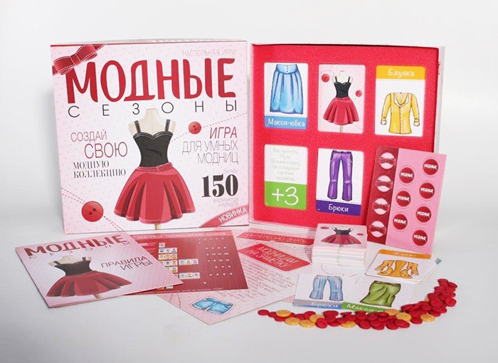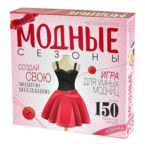 Настільна гра Модні сезони – своєрідний тренажер, який, з одного боку, допоможе раз і назавжди вирішити проблему слабкої половини з приводу надуманої відсутності гардеробу, а з іншого боку – «пригостить» цікавими історіями світу моди, навчить вважати і фантазувати.