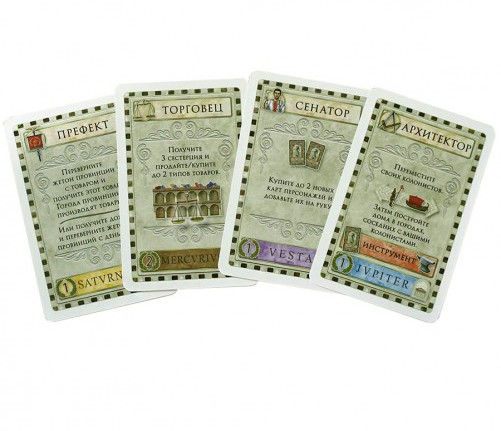 З картою «Префекта» можна зайнятися виробництвом товарів або отримати грошову винагороду, набивши свої кишені сестерціями з банку, а завдяки «Спеціалістам» вдасться зробити не що-небудь, а певний вид товару: вино, тканини, підкови та інше. Карта «Купця» спочатку приносить учаснику гроші, а потім дає можливість продати або купити два типи товару. При цьому кожна одиниця товару займає на складі окреме місце, а ціни фіксовані – поторгуватись не вийде.