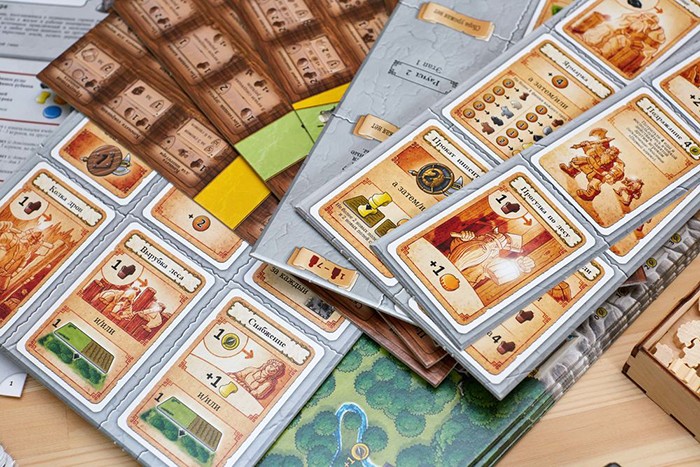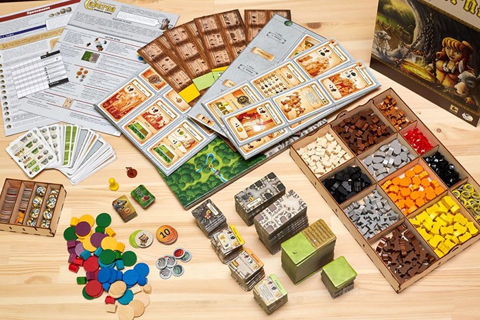 Печерні фермери не тільки дозволять привести в тонус свій розум, а й послужать як невелика гантелька. Тільки уявіть, коробка з усіма ігровими компонентами: дерев'яними фішечками, яких більше 300, жетонами, картами, планшетами та іншим важить цілих 3,5 кг. Чи це не говорить про насиченість та масштабність гри?