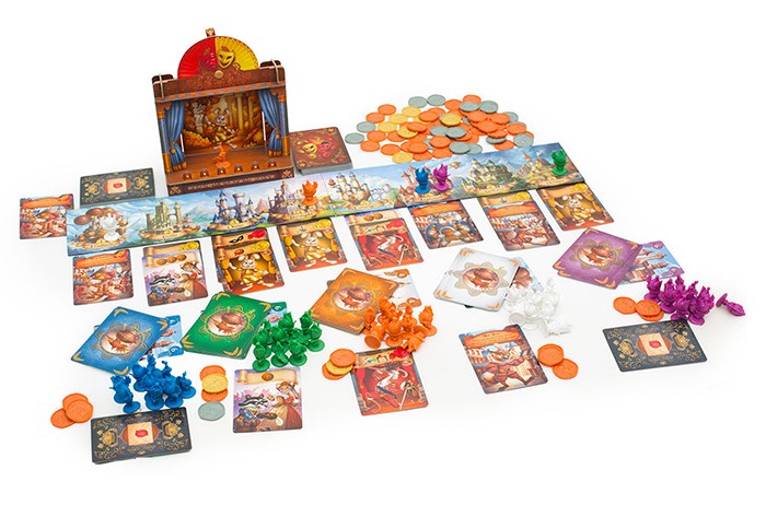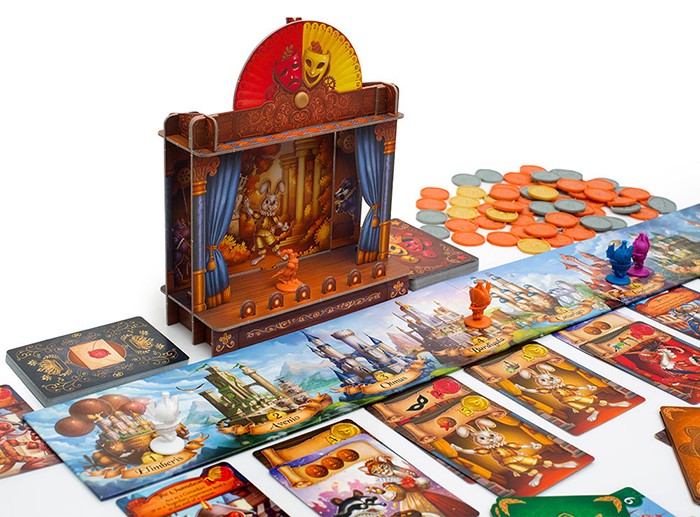 Настольная игра Хистрио. Пьеса из леса длится пару раундов – театральных сезонов, на протяжении которых участники тайно отправляют своих подчиненных (актёров) в разные города одного маленького королевства, чтоб там раздобыть себе козыри в рукава: профессиональных актёров, гибких акробатов или спонсоров, готовых помочь звонкой монетой. Не стоит забывать, что другие игроки тоже могут отправить свою труппу в тот же город, что и вы, а потому за преимущества придется побороться. А вот если в городе вы окажетесь единственными претендентами – первенство и все бонусы достанутся вам без лишних усилий.