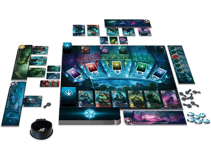 На початку партії розкладіть у центрі столу ігрове поле. Колоду карт Союзників, колоду карт Лордів, тайли локацій та жетони чудовиськ розмістіть у відповідні області на полі. Жетон загрози розміщується на першому поділі відповідного треку. Верхні 6 карт колоди лордів відкриваються, і їх формується двір. Учасники отримують по чаші для перлин і починають гру Безодня (Abyss) з 1 перлиною.