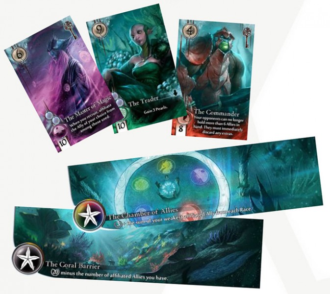- найняти Лорда: для цього знадобиться заплатити ціну вербування Лорда, яка вказана у перлинах та картах Союзників. Кожен Лорд – член однієї з шести гільдій, він має здібності тієї гільдії та раси, до яких належить.