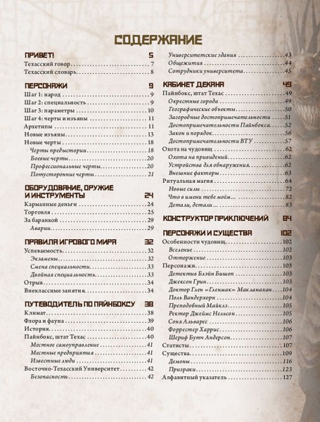 У книзі "Залікова книжка" ви знайдете посібник зі створення персонажів, нові вади, риси, спорядження, правила ігрового світу і вирушите на ознайомлювальну екскурсію по кампусу університету та містечку Пайнбокс. Для просунутих студентів ми передбачили навіть спецкурс з ритуальної магії та створення талісманів. Ну а конструктор пригод і коротка енциклопедія місцевих жителів здатні розпалити іскру творчості в будь-кому - хоч у тому похмурому дитині-охоронці з університетської автостоянки! Додаткові конструктори дозволять тобі створити захоплюючу пригоду та/або відв'язну вечірку, з'ясувати, що трапиться, якщо магічний ритуал пройде не так, як було задумано, і визначити, з якою «жахливою дивністю» студентам доведеться зіткнутися наступного разу.