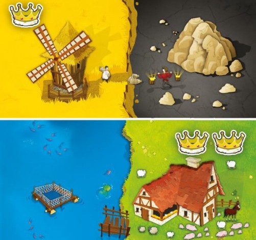 Итак, в игре Kingdomino. Лоскутное королевство вам предстоит побороться за земли, на которые претендуют и другие игроки. По условиям игры, все участники начинают с одной фишкой короля (двумя в дуэльной партии), одним стартовым участком и одним замком.