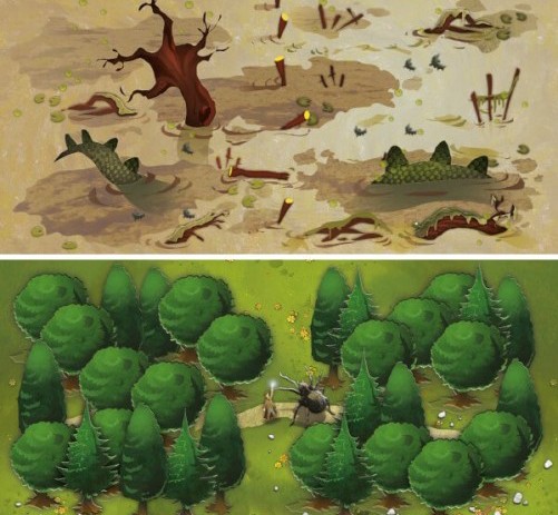 Один из участников перемешивает фишки игроков и, не глядя, достаёт их по очереди. Участник, чью фишку достали, выбирает один из свободных тайлов и занимает его, так происходит, пока все тайлы не будут заняты. Достаньте столько же дощечек и составьте новый ряд. Теперь игроки будут ходить по очереди, начиная с того, чья фишка стоит на самом верхнем тайле. Игрок перемещает фигурку своего короля на новый тайл, а прошлый поднимает и присоединяет к своему замку. Обратите внимание: присоединять тайлы к своему королевству нужно по принципу домино, то есть, чтоб как минимум один участок ваших земель совпадал с участком на тайле: лес – к лесу, речку – к речке и т.д. При этом территория ваших владений не должна выходить за пределы поля размером 5х5 квадратов. Если выбранный вами тайл невозможно присоединить, он отправляется в сброс.