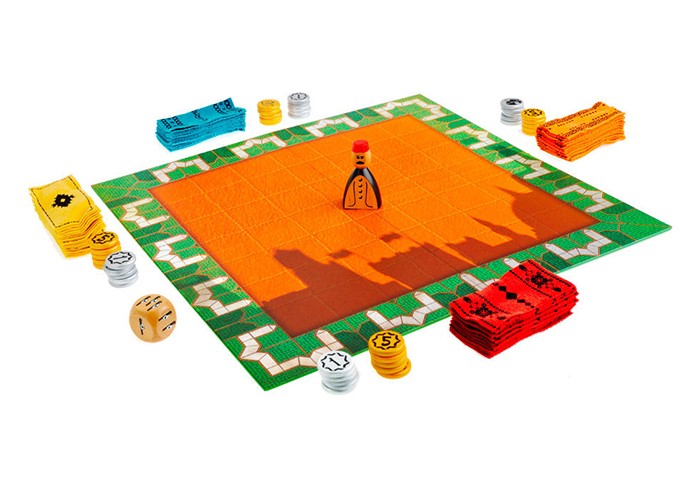 Вам пощастило взяти участь у змаганні найкращих продавців килимів! Кращих тому, що продають лише дорогі якісні килими з натуральних матеріалів. На підтвердження цьому в коробці гри Марракеш (Marrakech) ви знайдете 57 міні-версій тканинних килимів. Як і належить, на чолі всієї дії стоїть Ассан - директор ринку, саме його фігурка знаходиться в центрі поля.