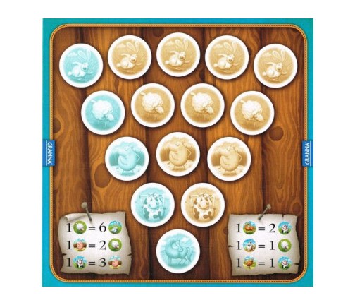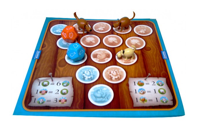 В начале игры в вашем распоряжении окажутся игровые планшеты (загоны), где изображены области для каждого вида животных, а также обменный курс. Каждый ход участники будут бросать кубики, чтоб по выпавшим граням определить, какие животные отправляются к ним в загон. Животные, у которых уровень меньше, встречаются на кубиках чаще, таким образом, на двух кубиков вы найдёте аж 12 крольчат и только одну корову.