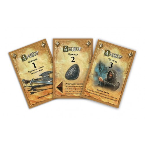 У кооперативній настільній грі Андор (Legends of Andor) правила не надто складні, що дозволяє рекомендувати її як прекрасну сімейну розвагу. Купити гру Андор (Legends of Andor) буде цікаво і поціновувачам рольових настілок. У правилах передбачено аж п'ять різних сценаріїв для проходження, що разом із двостороннім ігровим полем дозволяє значно продовжити задоволення від гри. Адже доведеться не лише знищувати ворогів королівства, а й вирушить за скарбами в підземний світ, і добувати ліки для хворого короля Бранда... Два сценарії передбачають дію випадкових подій. Ну, а для досвідчених гравців завжди є шостий варіант: Легенда про спадщину дракона! У ній можна самостійно придумати собі проблеми та бонуси, і вписати їх у спеціально передбачені порожні картки.